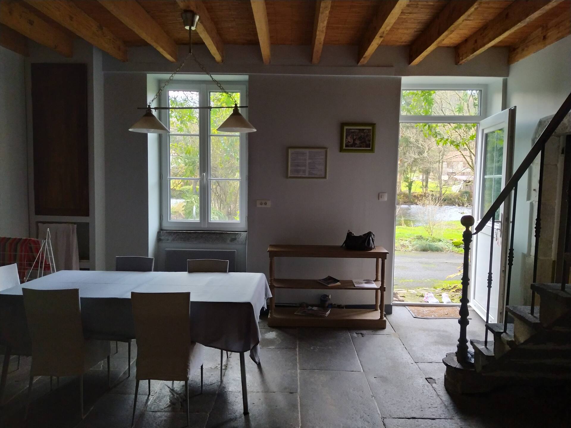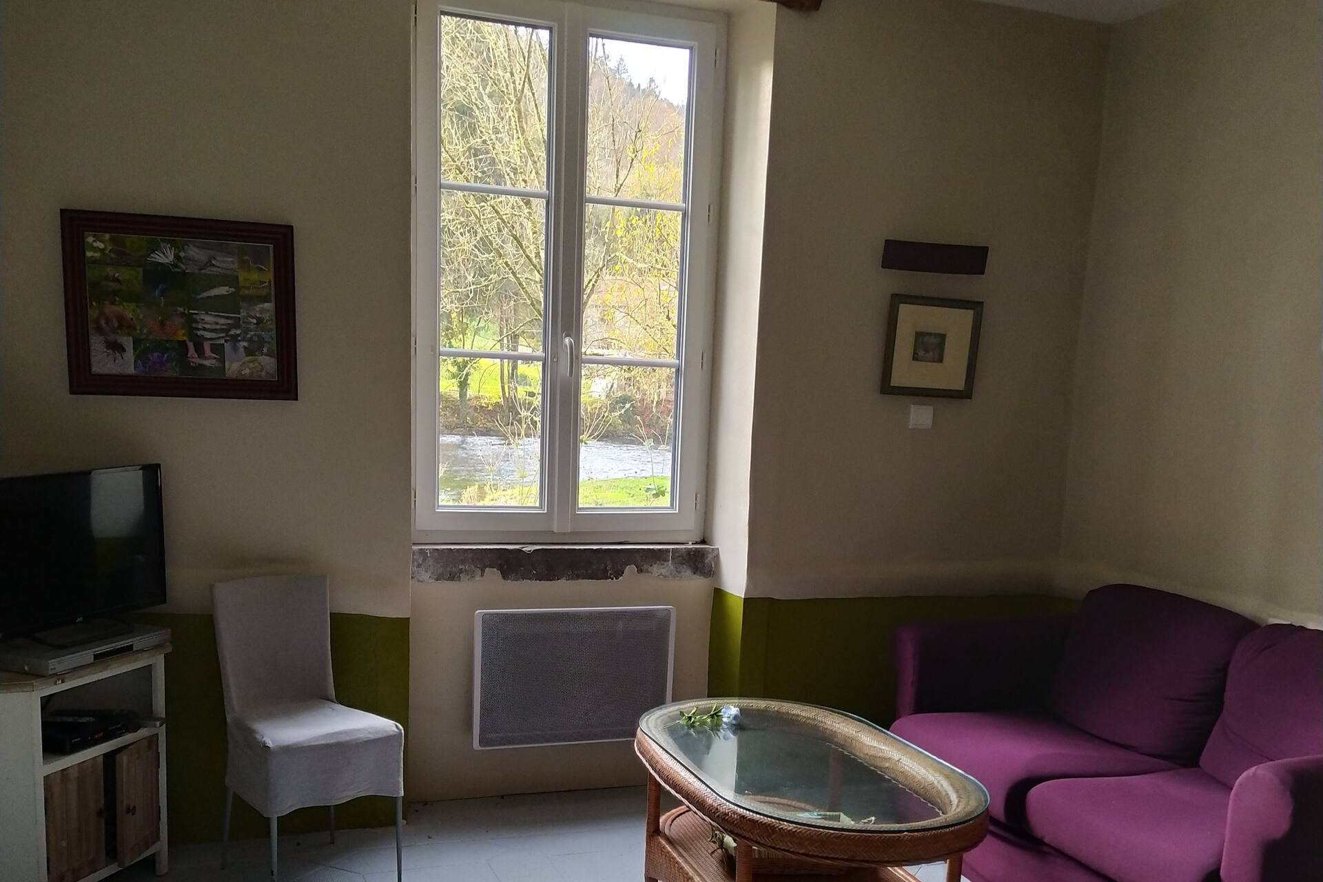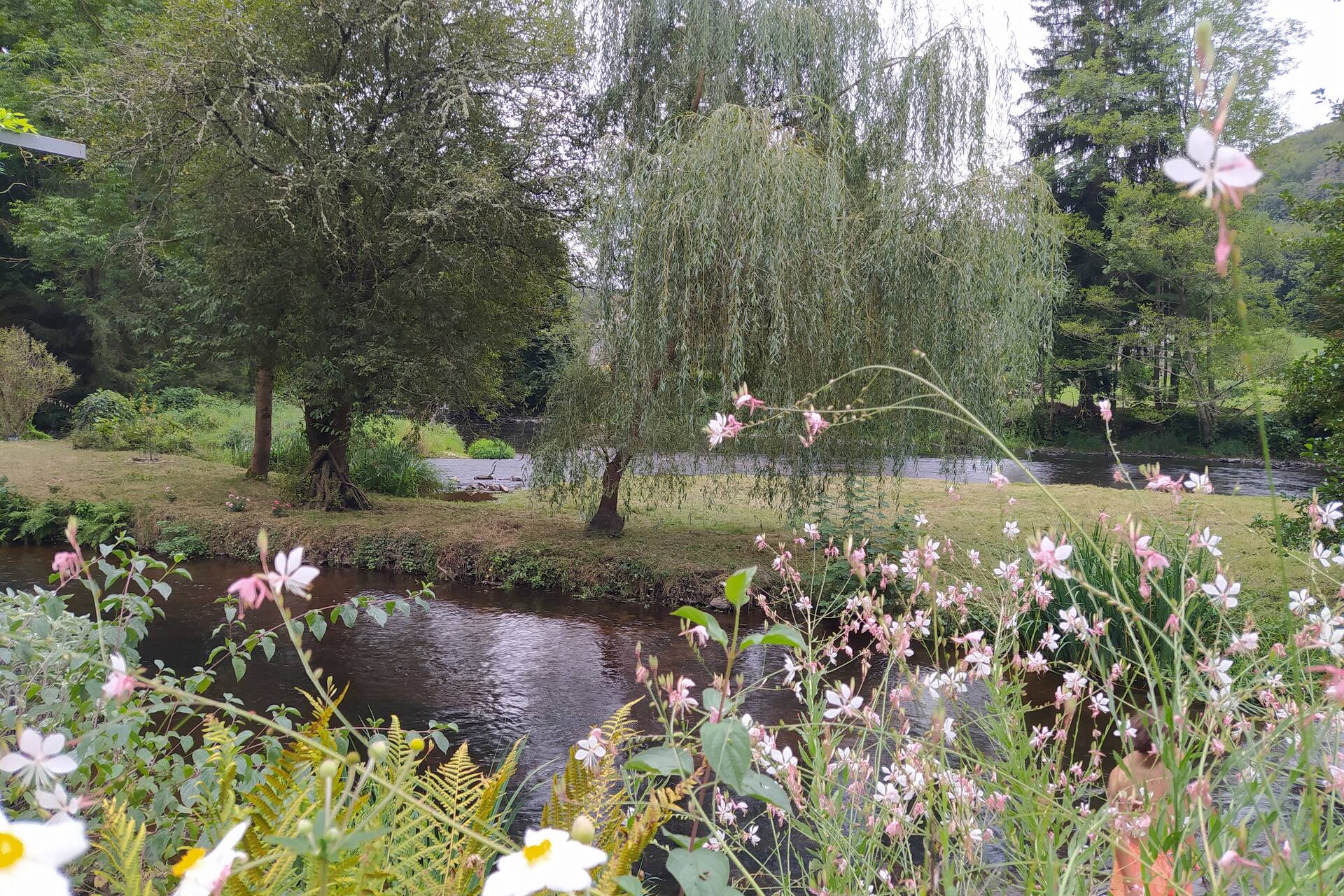 Le gîte a son accès à son terrain et à la rivière par une passerelle privée. C’est une île, située entre un petit canal (le bief) et la rivière elle-même.