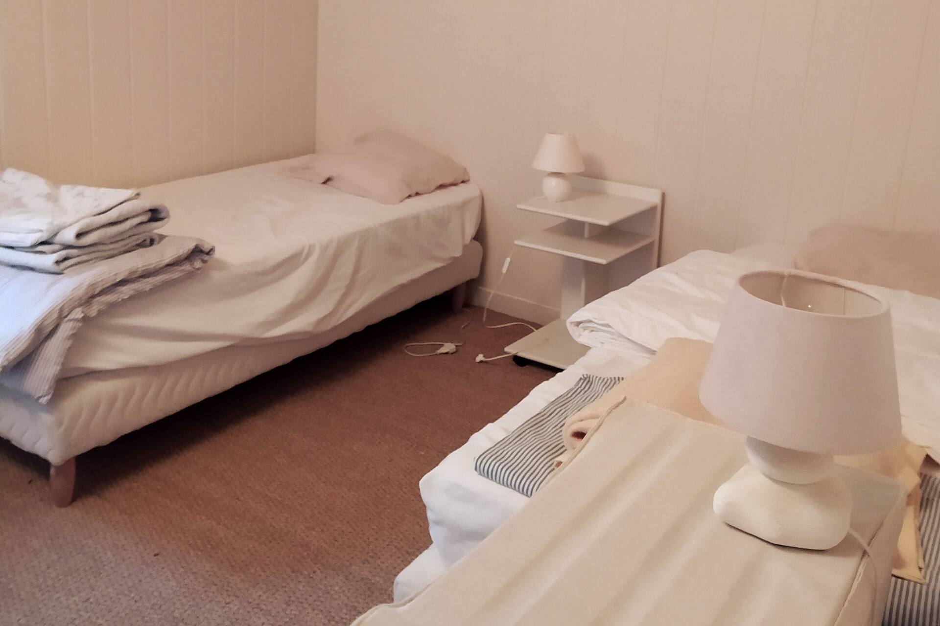– chambre n°2 de 12 m2 avec deux lits 1 place