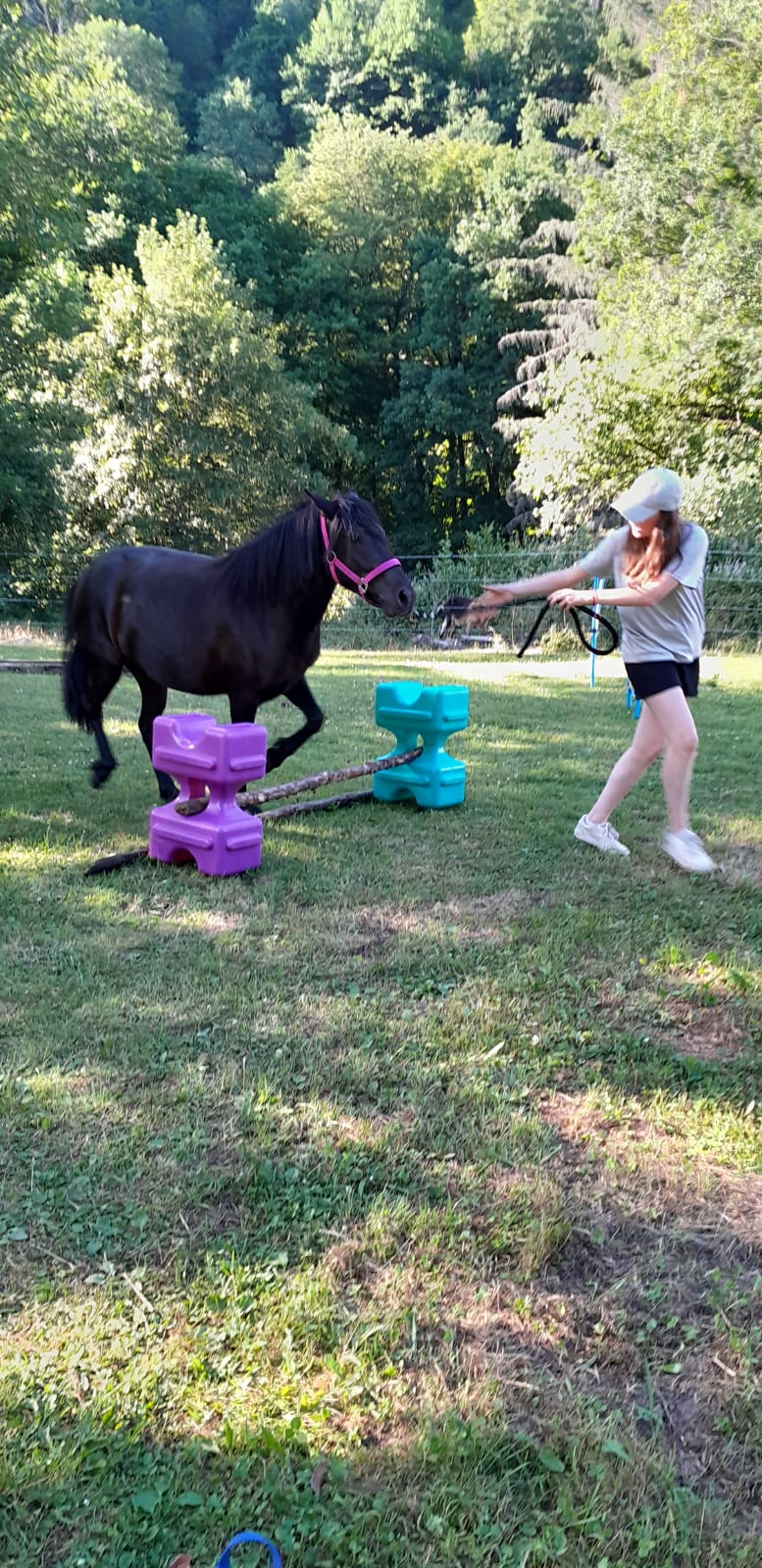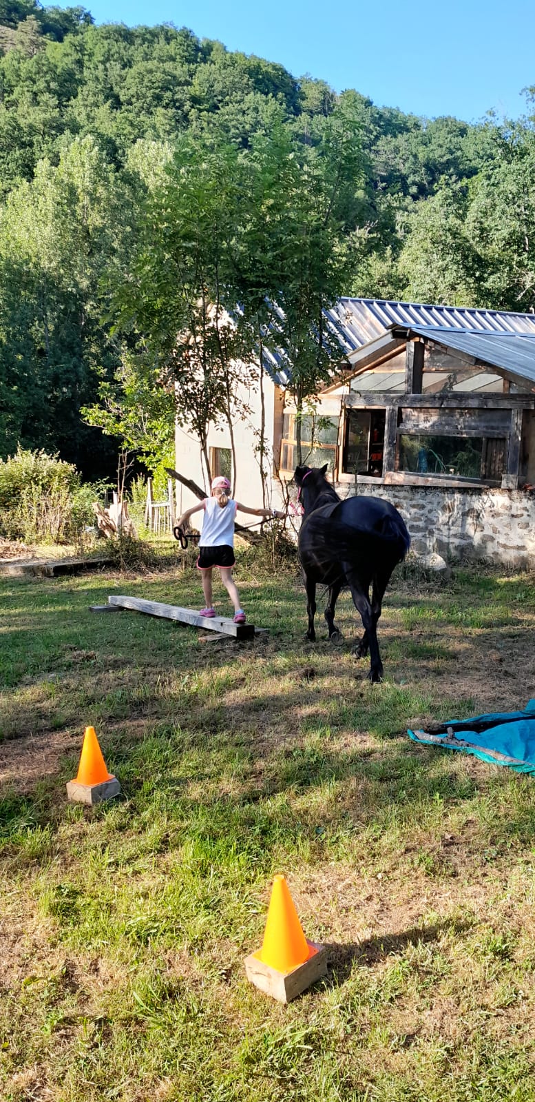Un instant avec des longues rênes (à 2 personnes) peut être intégré dans la séance pour vous amuser autrement. Vous vous glissez dans la peau d’un cheval. L’un guide et fait le cavalier. L’autre, les yeux fermés, tient les rênes dans ses mains et fait le cheval.